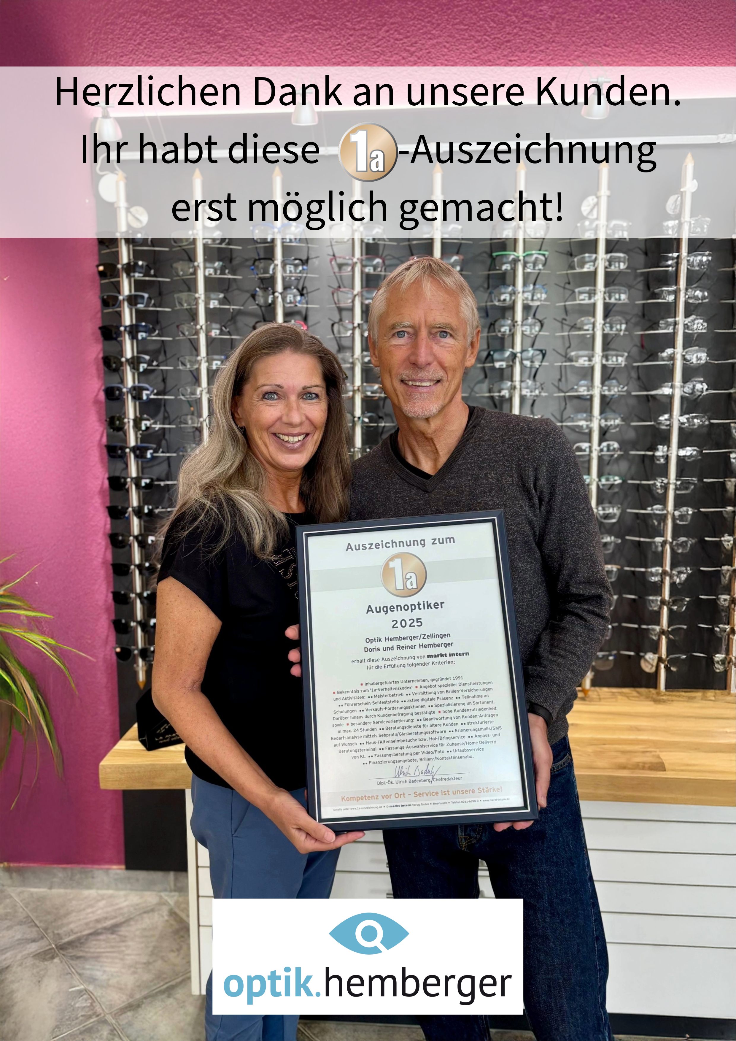 1a – Auszeichnung für „OPTIK HEMBERGER GmbH“